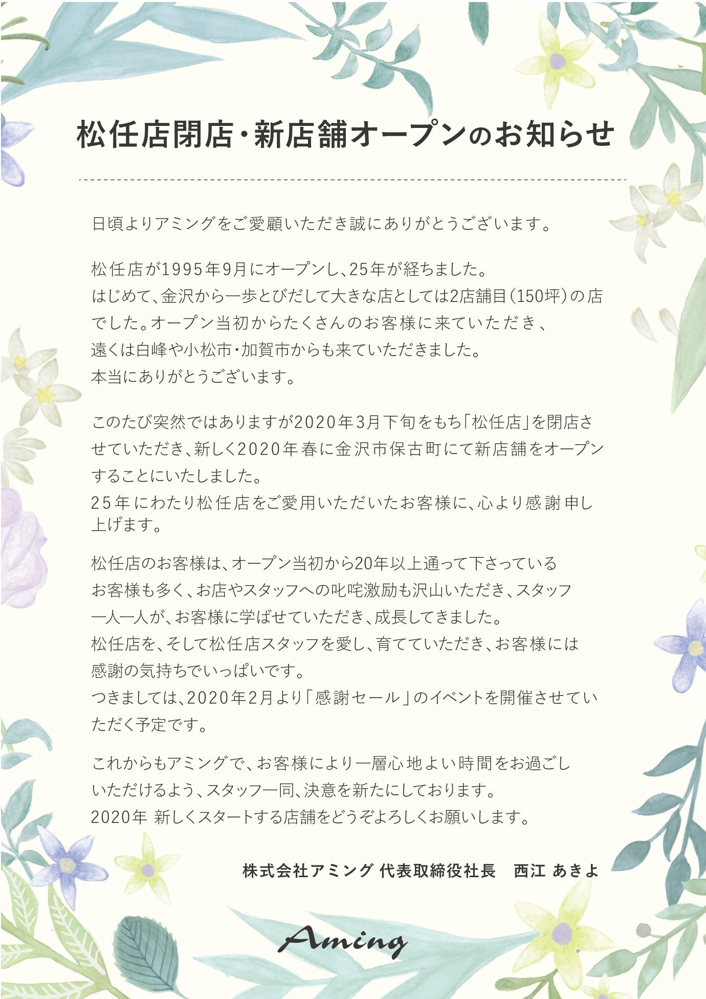 松任店閉店・新店舗オープンのお知らせ