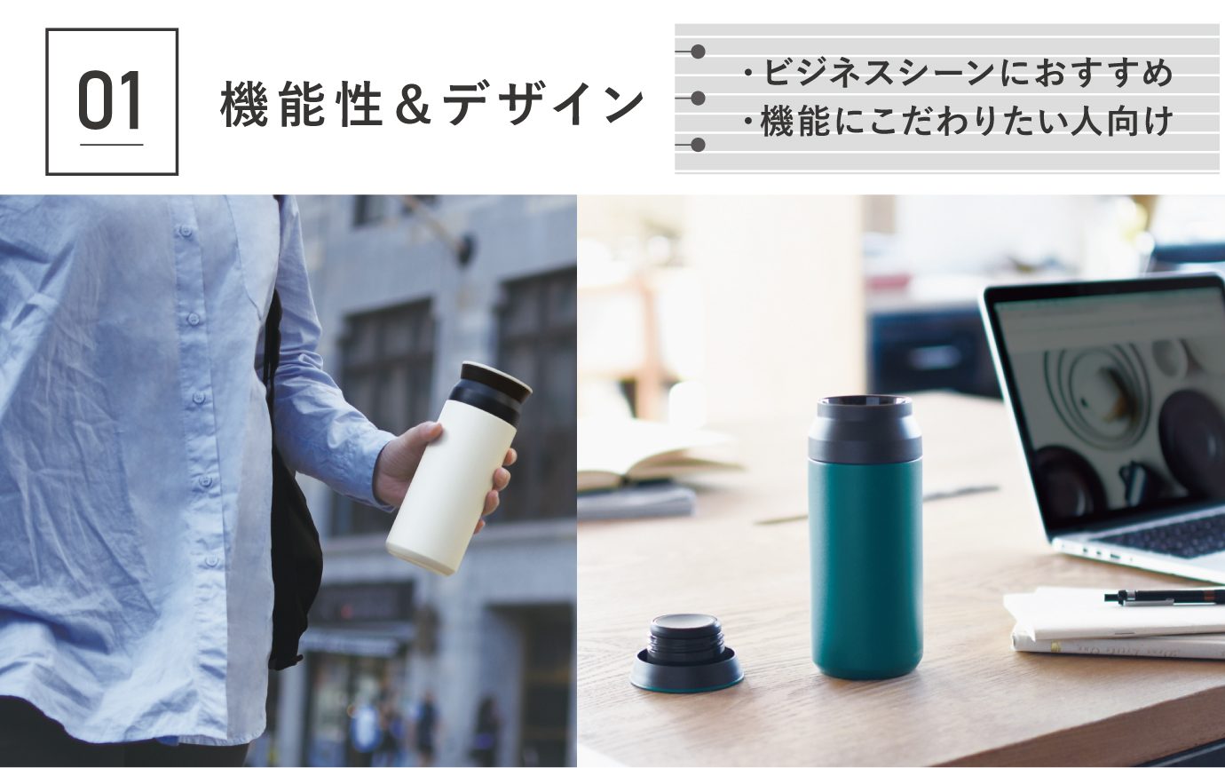 こだわりを持ちながらも柔軟なライフスタイルを送る人に向けたトラベルタンブラー。真空二重構造により優れた保冷・保温効果を発揮し、温かいコーヒー・紅茶から冷たいドリンクまで長時間楽しむことができます。中身が勢いよく出ることを防ぐ構造なので、最後までストレスなく飲み干すことができます。