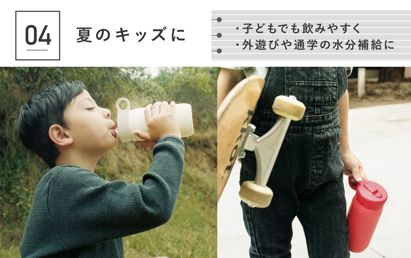 青空の下で夢中になって遊ぶキッズに向けたタンブラー。氷が溶けにくい真空二重構造で、飲み物を冷たいまま長時間キープ!飲み口は、小さな子どもも飲みやすいストロータイプで、口当たりも◎。ストローは取り外せるので、お好みの使い方ができます。