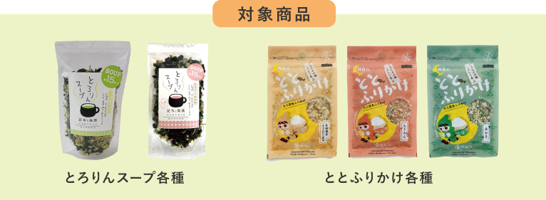 8月22日(土)~28日(金)の期間、[とろりんスープ]または[ととふりかけ]を