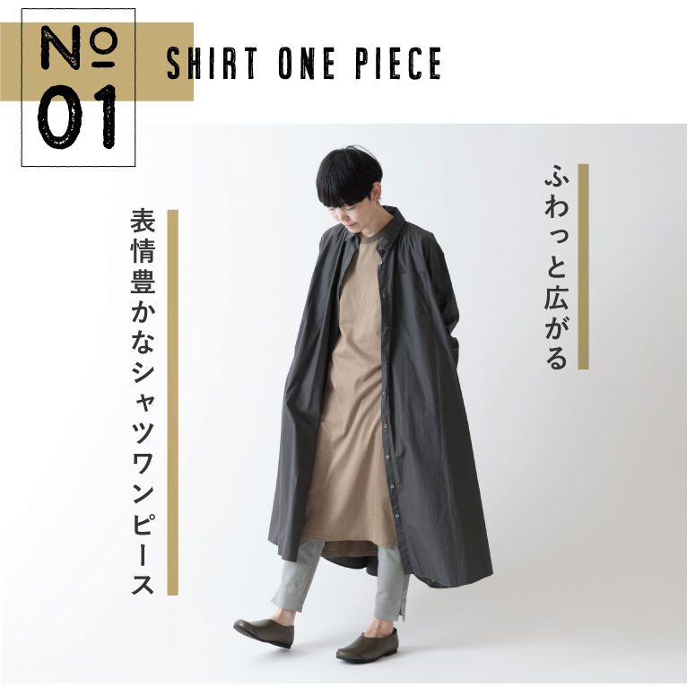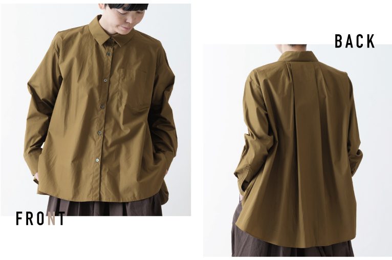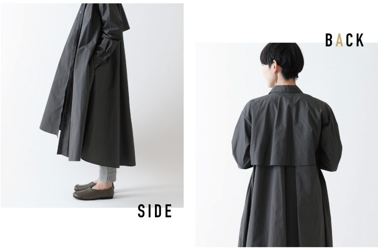 高密度に織り上げたコットン生地のシャツワンピース。背中のフラップがポイントです。