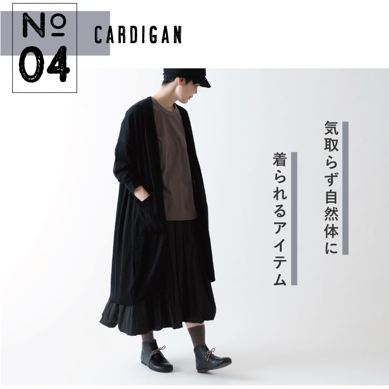 滑らかな肌触りですっきりした印象のロングカーディガン。