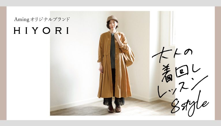 上質な素材にこだわったお手頃価格のアイテムが豊富に揃う、Amingオリジナルブランド「HIYORI(ひより)」。今季新作アイテムから、選りすぐりの10着を使った、秋冬をもっとおしゃれに見せるお手本スタイリングをご紹介します。