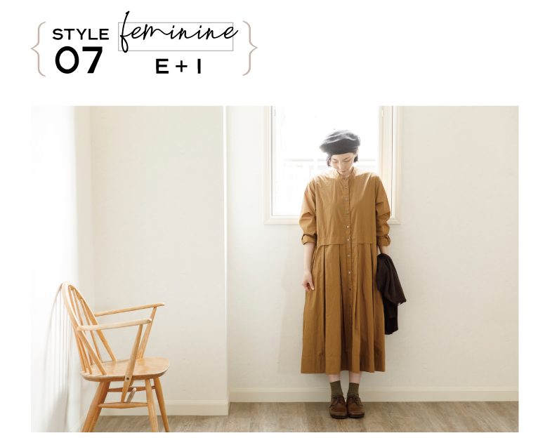 落ち着いたキャメルのワンピースは、1枚で主役にもなる強い味方。