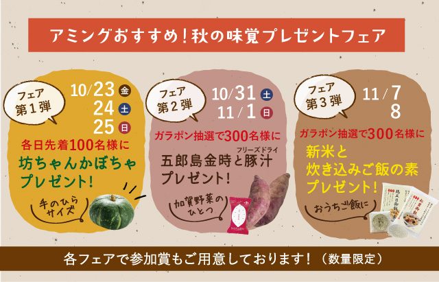 アミングおすすめの秋の味覚がもらえるチャンス!ぜひご参加ください。