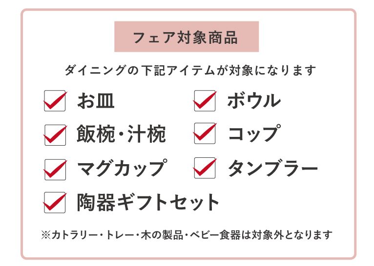 期間中、ダイニングの下記対象商品を税込5,000円以上ご購入で、アミングオリジナルエコバッグを1点プレゼント!!1人暮らしでも家族でも、新生活には欠かせない食器。この機会にお気に入りのものを探してみませんか?