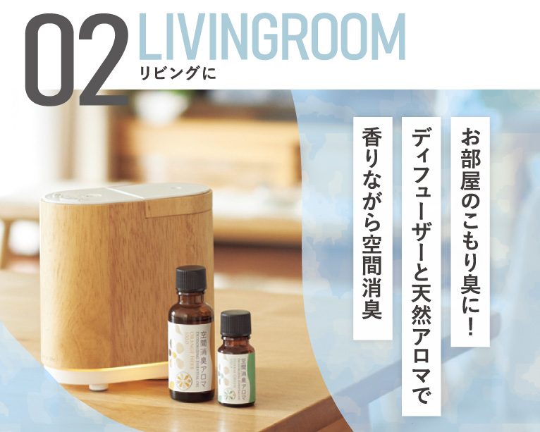エッセンシャルオイルのみで作られた天然の消臭オイル。ディフューザーやティッシュに数滴垂らして使えば、おうちの様々なスペースで活躍!心地よくニオイ対策ができるアイテムです。