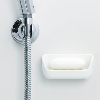 浴室の壁にも簡単にくっつくマグネットタイプの石けん置き。底が傾いており自然に水が切れる構造なので、石けんが乾きやすくいつも“きれい”を保てます。