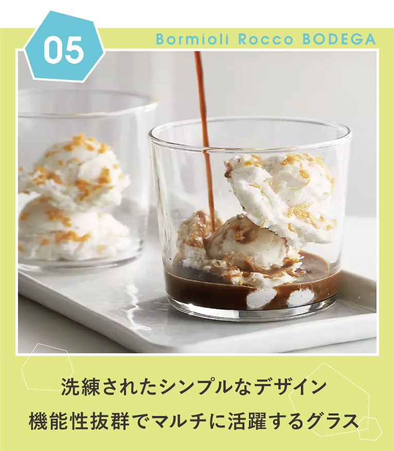 イタリアの老舗ガラスメーカー「Bormioli Rocco(ボルミオリ・ロッコ)」のグラス「ボデガ」。飲み物を入れるのはもちろん、サラダやデザートの盛り付けにもぴったり!強化ガラスで耐熱性があり、電子レンジや食洗器にも対応していて機能性も抜群です。