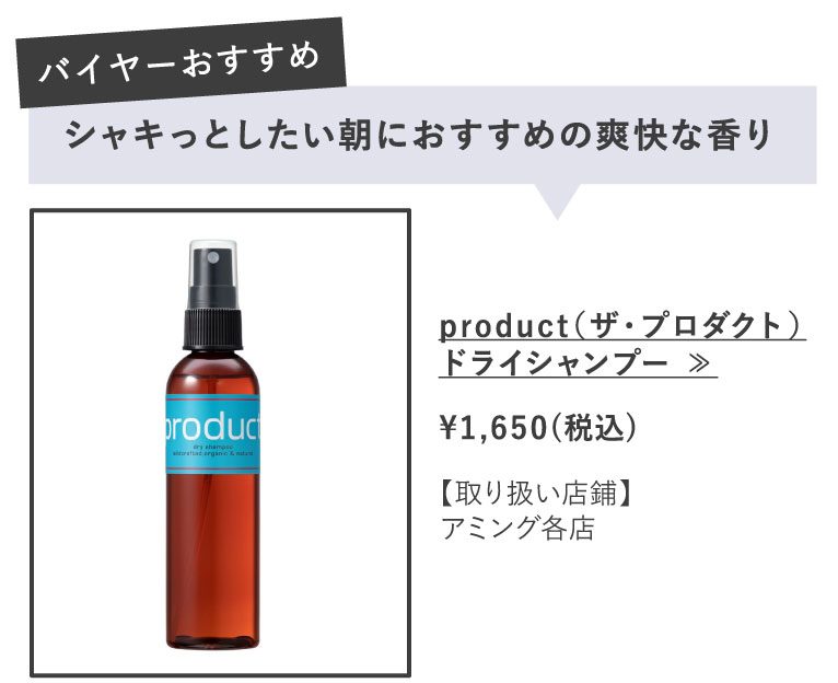頭ほぐしを実践するときは、お気に入りの香りでリラックスできる「ドライシャンプー」がおすすめです。頭ほぐしのポイントでもある「呼吸を止めない」ことも、香りを楽しみながらだと意識せずに自然とできます。