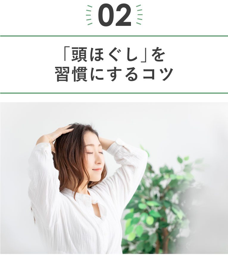 すぐに効果を実感できるのも「頭ほぐし」の嬉しいポイント。そのため比較的続けやすいのですが、いくつも実践しようとすると習慣化するにはコツが必要になってきます。