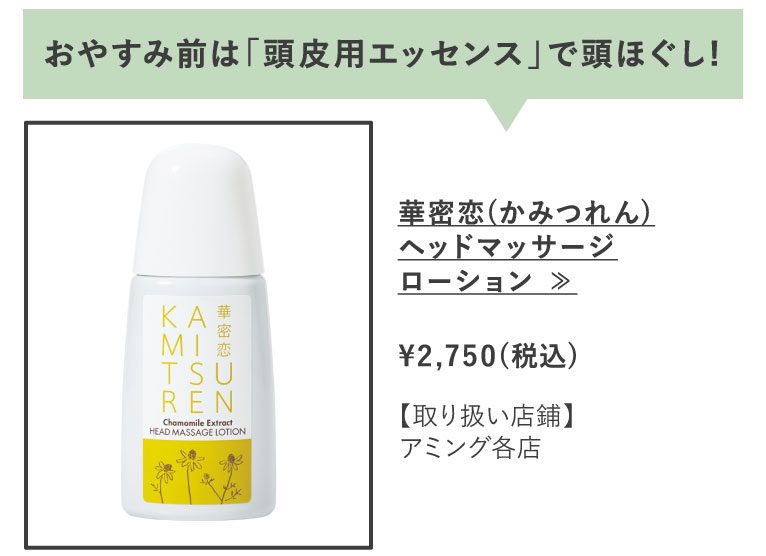 さらにマッサージすることで血行を促進し、毛髪にハリやコシを与えて健やかな髪へと導きます。頭皮環境を整えながら「頭ほぐし」もでき、ダブルで嬉しいケアタイムになりますね。