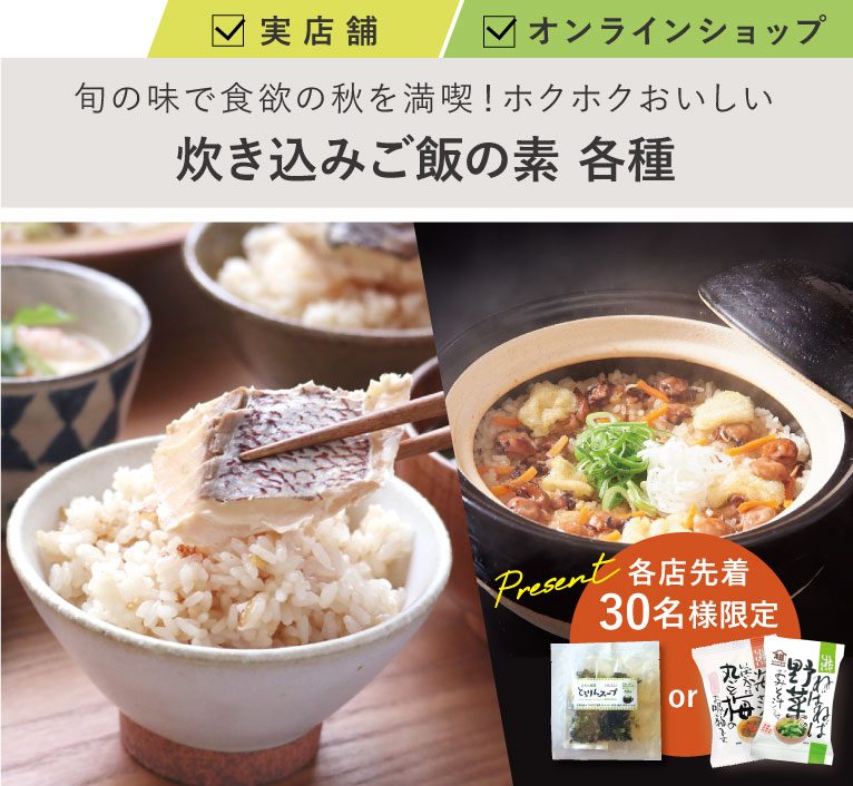 【9月フェア】「炊き込みご飯の素」各種購入で人気のスーププレゼント!