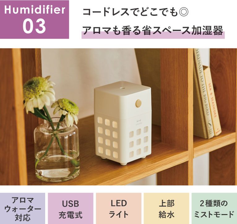 今回は加湿器と合わせて使いたい除菌・消臭アイテムや、どんなシーンでも自分の周りを加湿してくれるコンパクト加湿器をご紹介します。