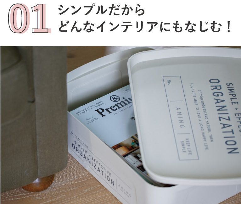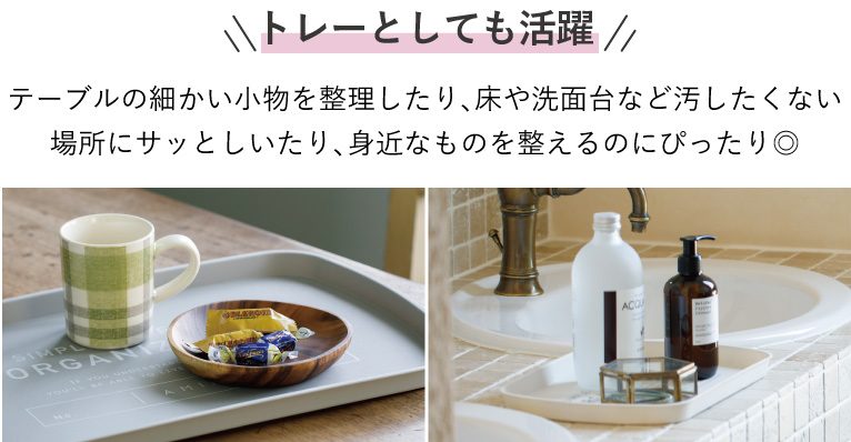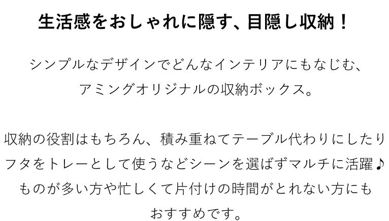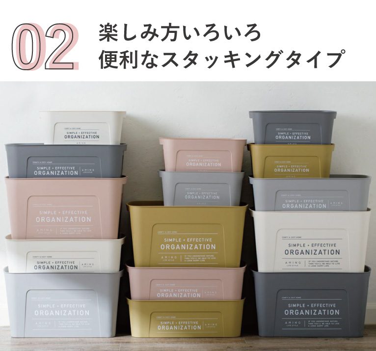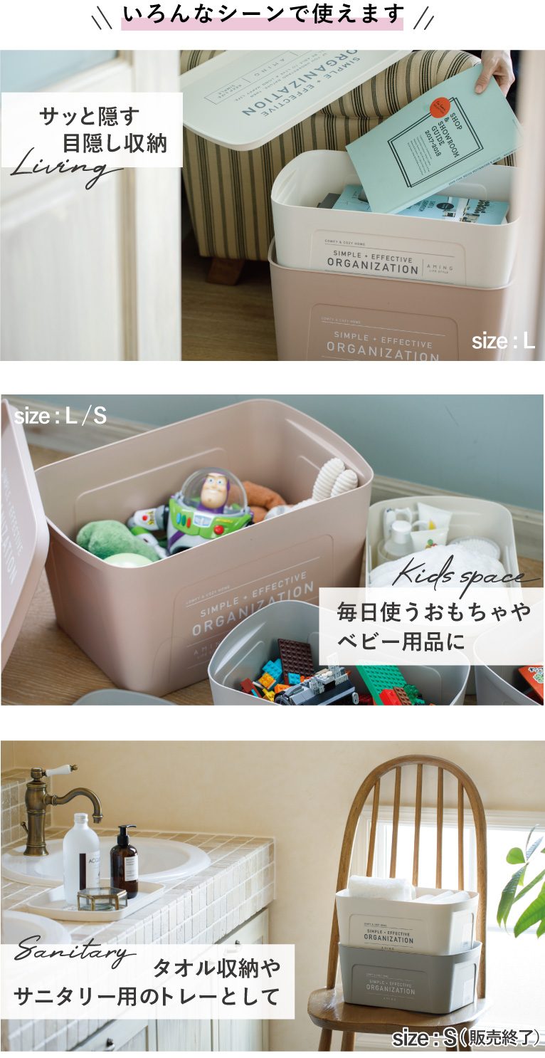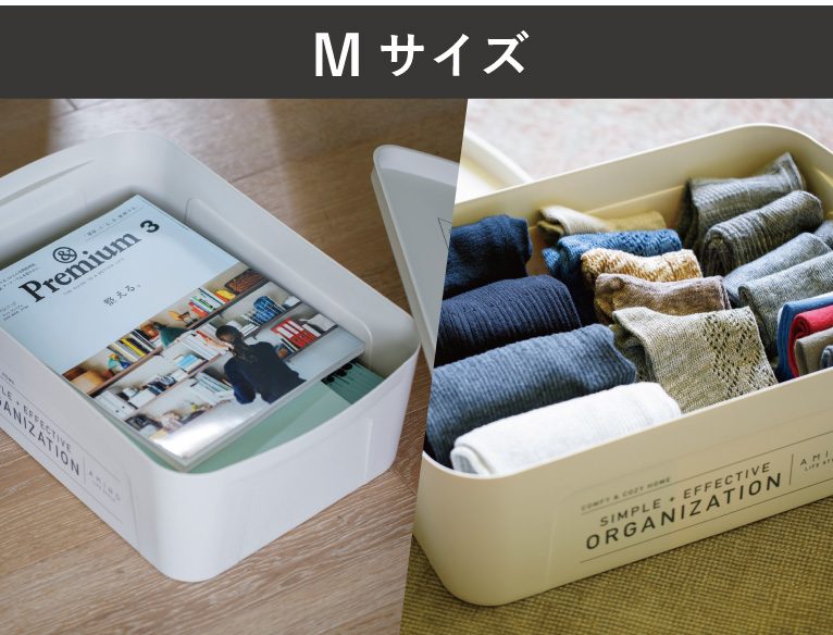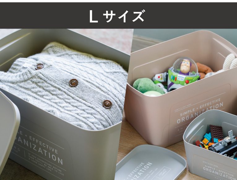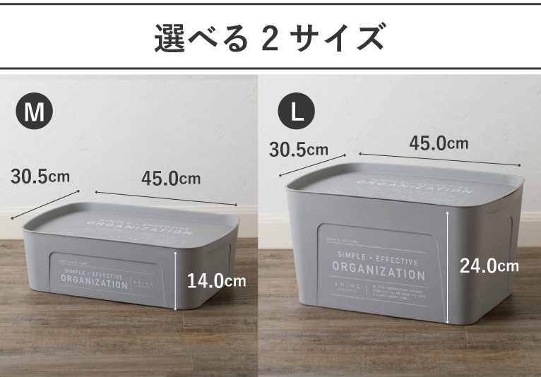 サイズは選べる2サイズ展開。きちっと整理整頓したいときや一時的にざっくり片づけたいときなど、シーンやモノに合わせて使い分けができます。