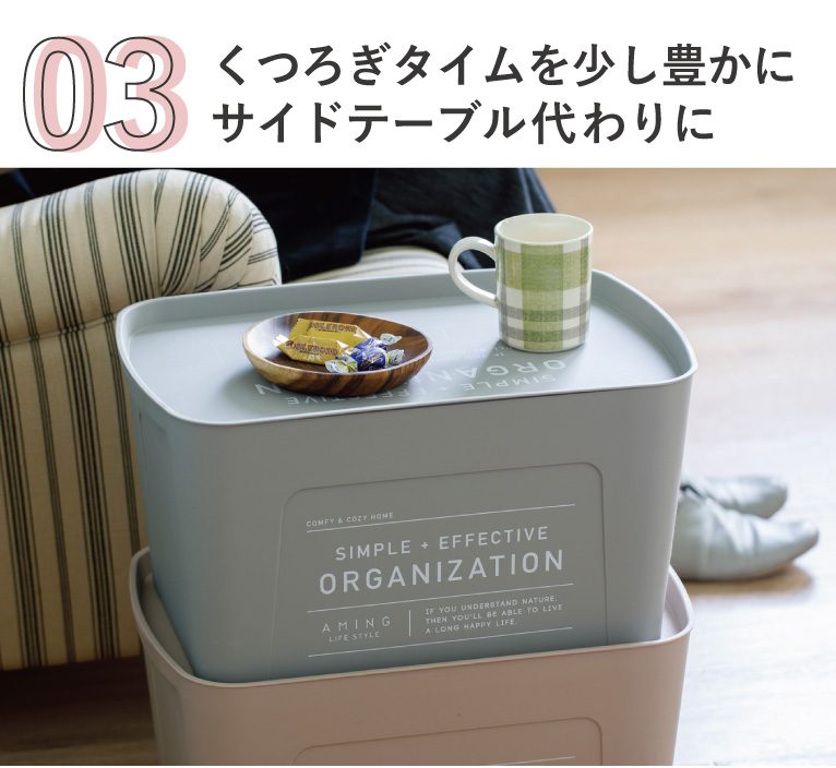 ボックスを重ねて置くだけで簡単なサイドテーブルのできあがり!