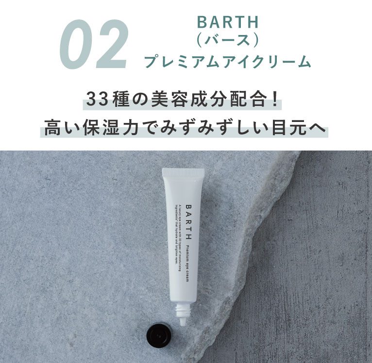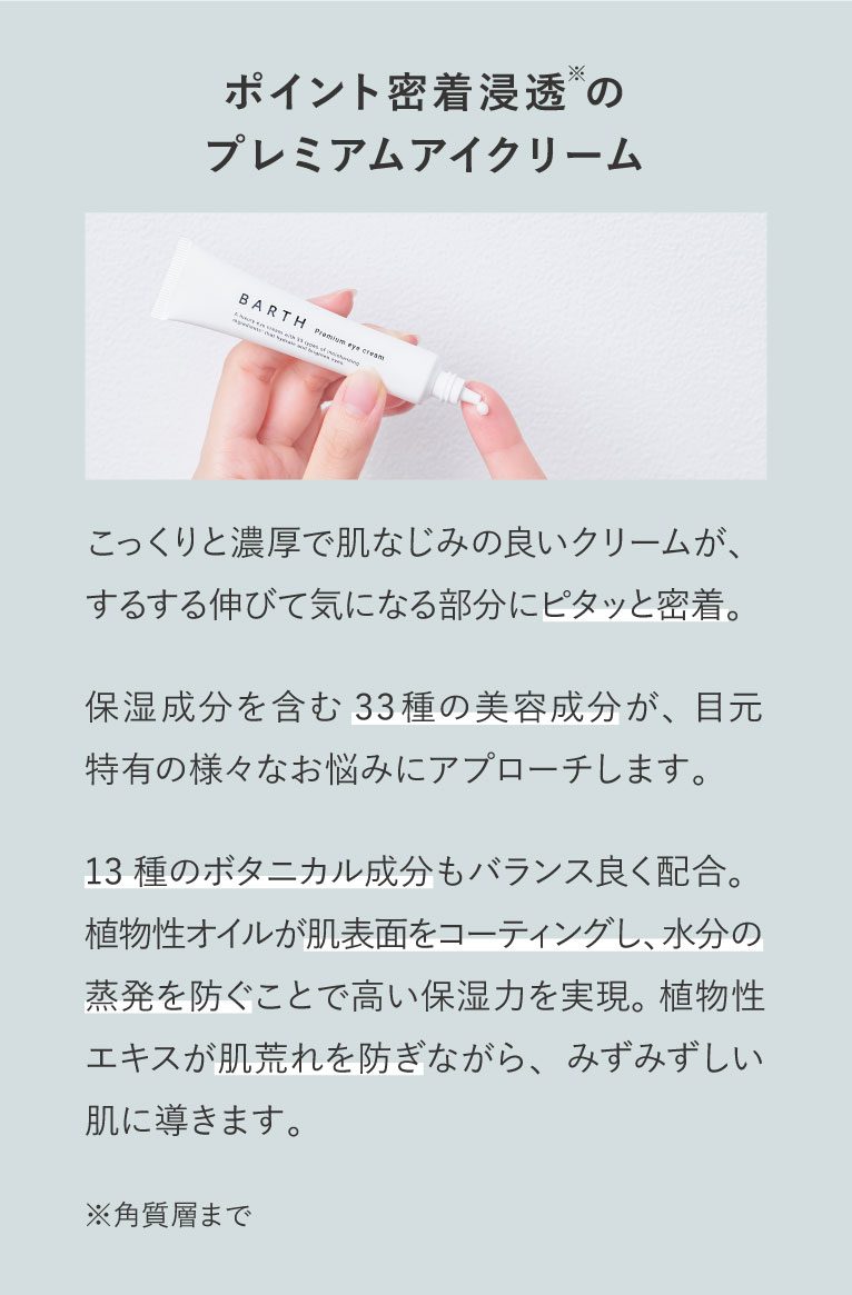 02 33種の美容成分配合!高い保湿力でみずみずしい目元へ!BARTH(バース) プレミアムアイクリーム