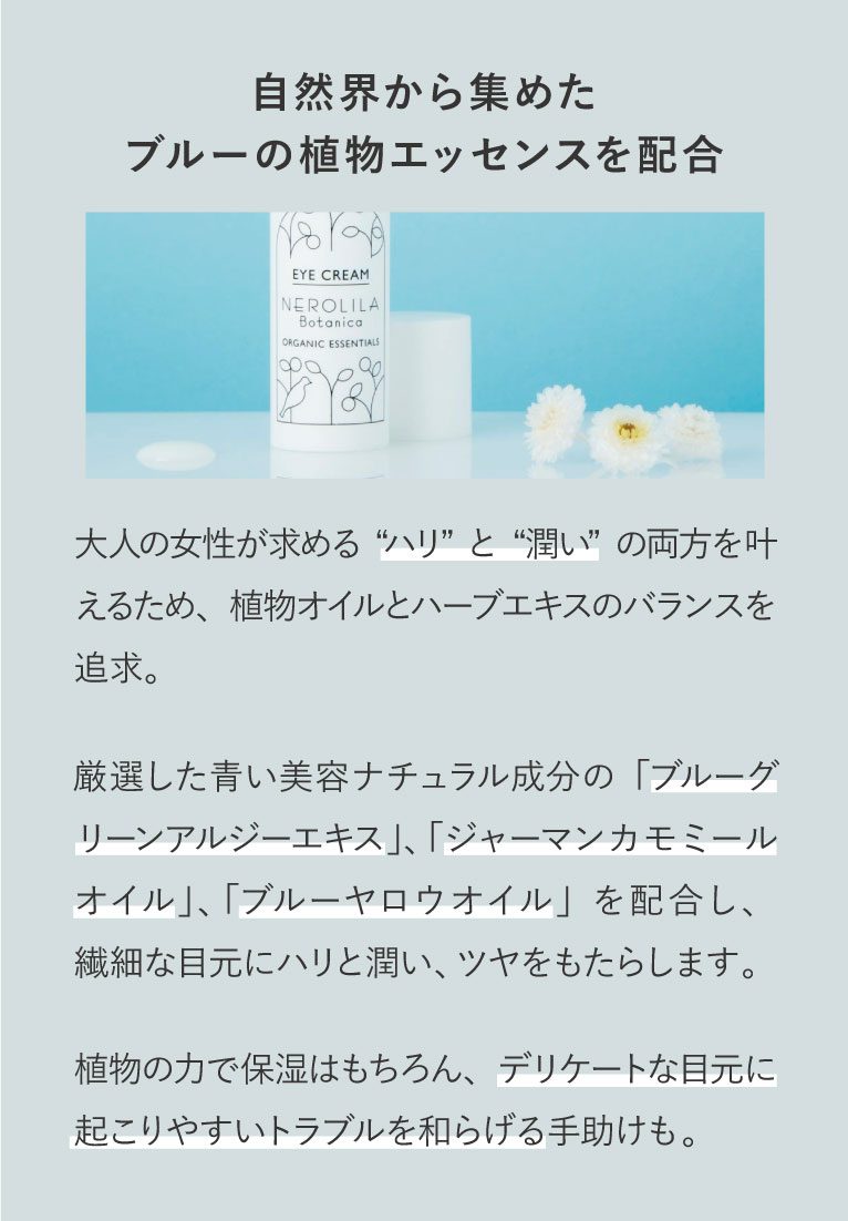 03 オーガニック&ナチュラル成分でデリケートな目元にハリと潤いを!NEROLILA Botanica(ネロリラボタニカ) トリプルブルー コンセントレイト