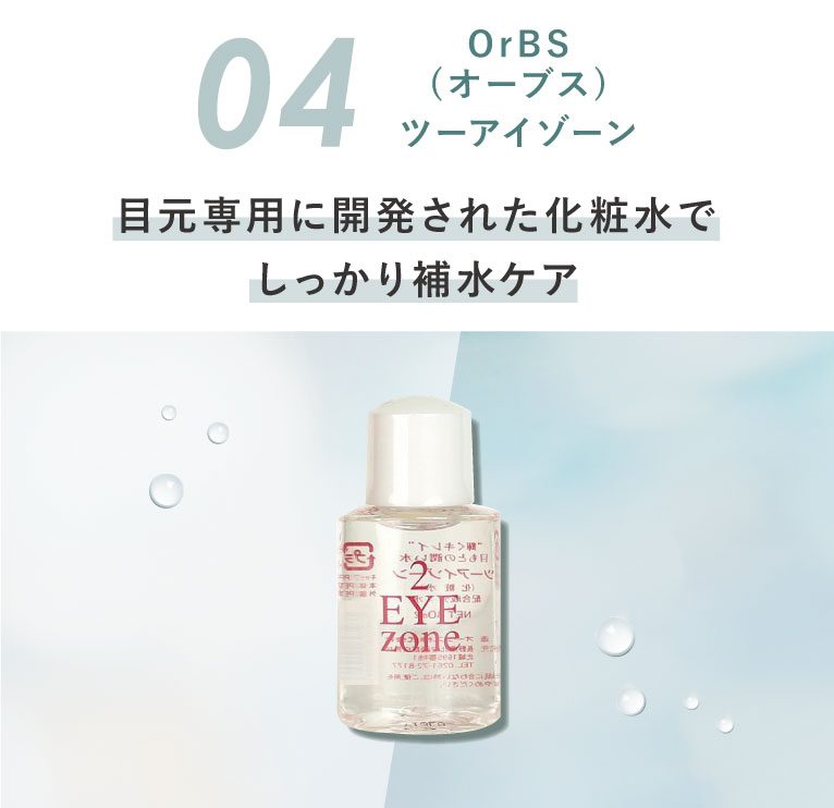 04 目元専用に開発された化粧水でしっかり補水ケア!OrBS(オーブス) ツーアイゾーン