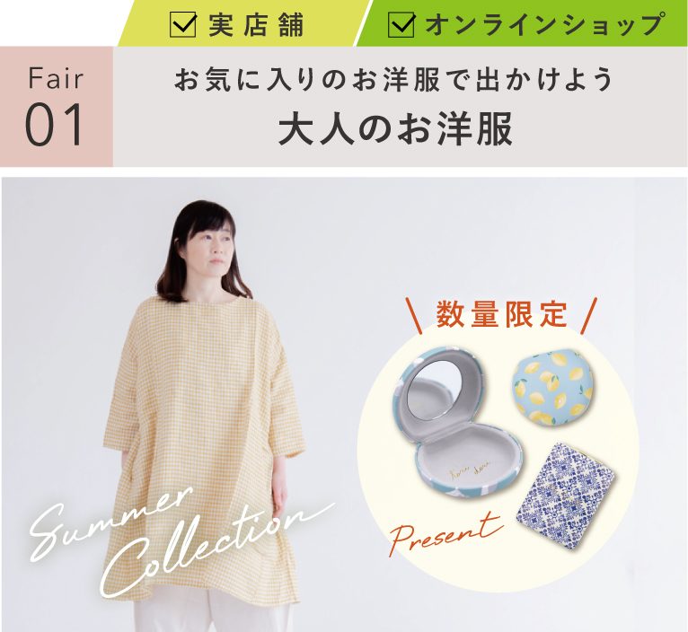 大人のお洋服を¥15,000(税込)以上ご購入でコンパクトミラーを1点プレゼント!
