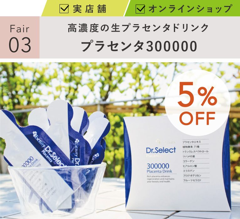 プラセンタエキスがたっぷり凝縮された美容ドリンク、Dr.Select プラセンタ300000が5%OFF!
