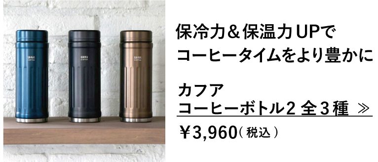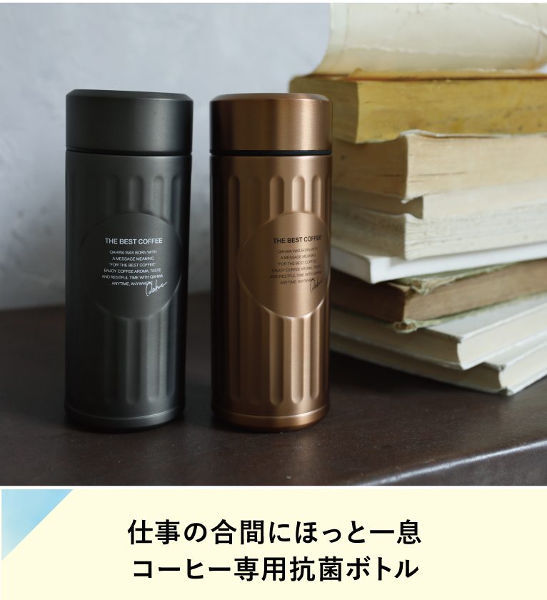 コーヒーをおいしく持ち運べるようにこだわってつくられた、コーヒー専用ボトル。ボトルの内面にテフロン加工が施されており、飲み物の匂い移りがしにくく、汚れもつきにくいので衛生的に使えます。
