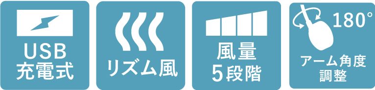 USB充電式なのでコードレスでお使いいただけます。スタンダードな形で機能もしっかりしており、普段使いしやすい扇風機です。