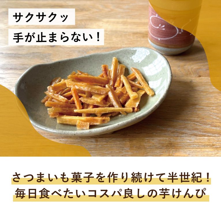 昔ながらの懐かしい芋の味わい。ついついつまんでしまう美味しさです。