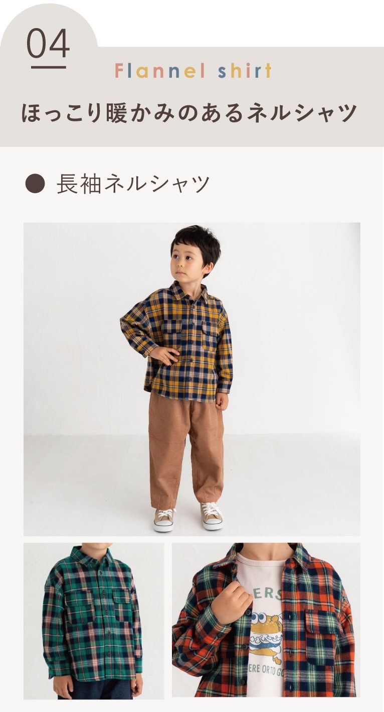 ほっこり暖かみのある『長袖ネルシャツ』。元気で秋らしい色味で程よくゆるっとしたBOXシルエットが特徴。1枚で着るのはもちろん、羽織として着用するのもおすすめ!秋冬のおしゃれを彩ってくれるアイテムです。