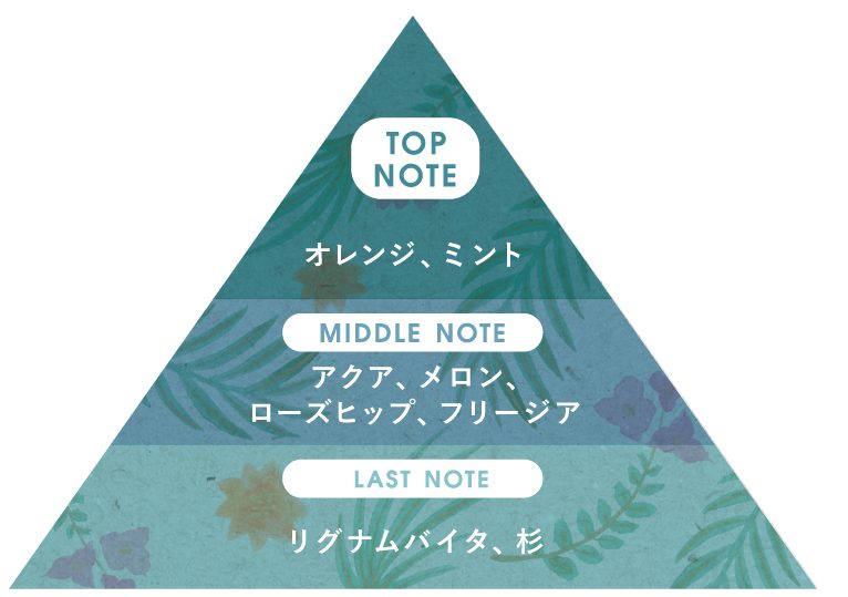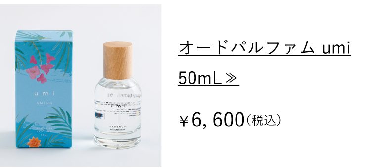 『umi=海』、水や大気といった静かな香りだけでなく、海のような爽快さを感じるアクア系の香り。ボタニカル系のナチュラルさをプラスしたアクアティック。目を閉じれば、母なる海がほんのりとあなたを包み込みます。
