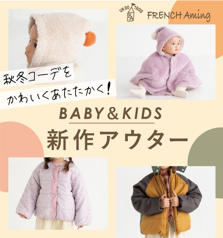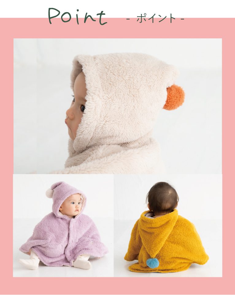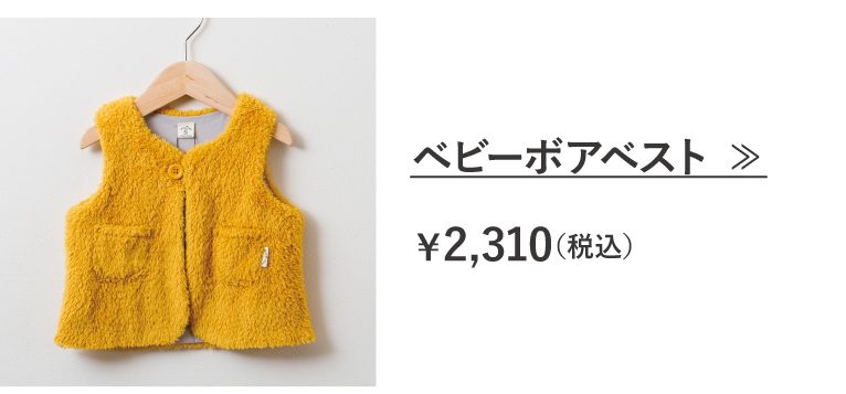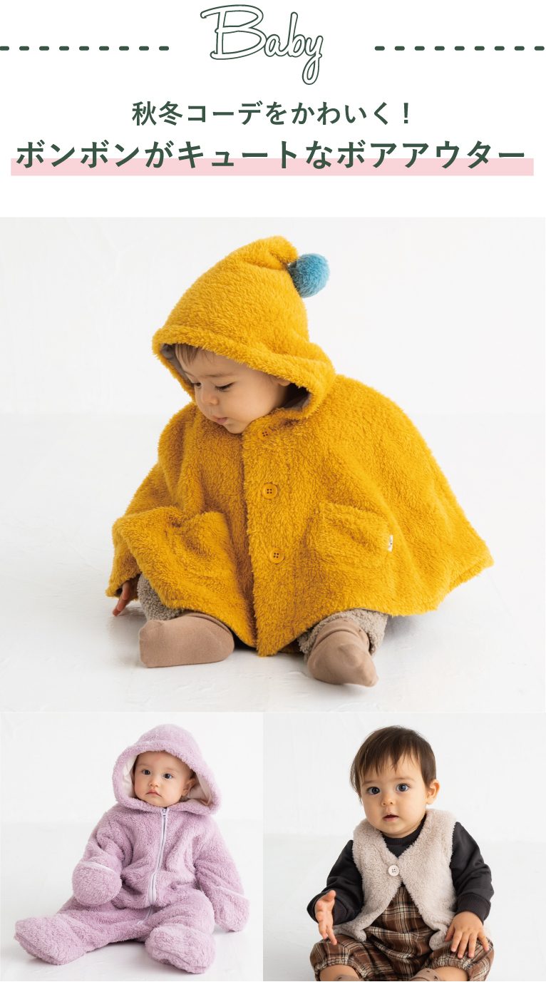 ベビーを最高にかわいく見せてくれる!ふわふわのボアシリーズ。「ポンチョ」「ジャンプスーツ」「ベスト」の3種類!ベビーのお出かけコーデをかわいく仕上げてくれます。