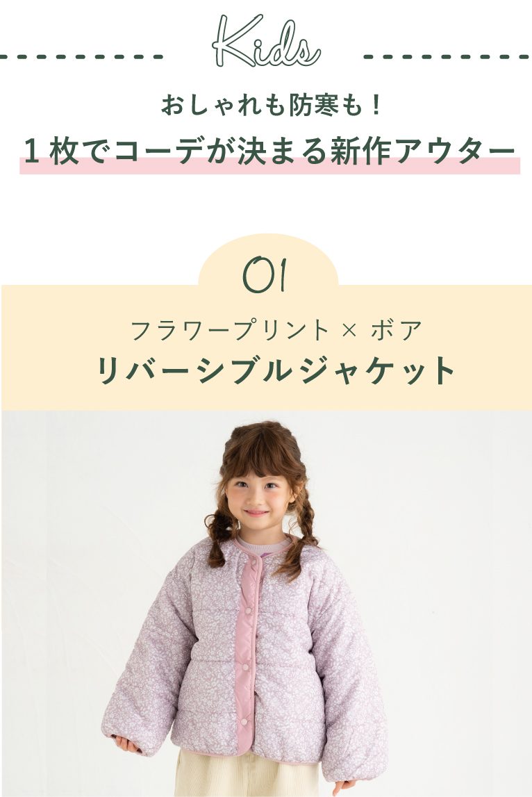 気温やコーデに合わせて使えるリバーシブル。裾がすぼまったデザインで冷気が入りにくいのもうれしいポイント◎フラワープリントはコーデのアクセントに、存在感のあるボア素材は秋冬らしいふんわりとした雰囲気にしてくれます。