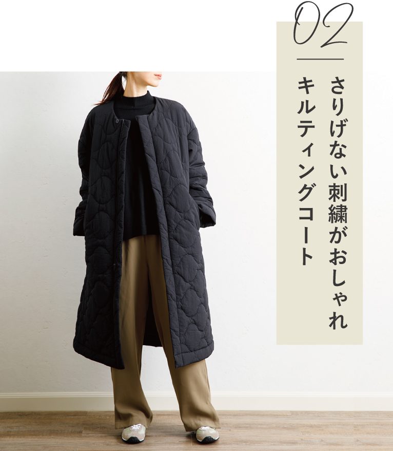 ■商品情報【bulbul】ナイロンワッシャー刺繍キルティングノーカラーコート ≫¥24,200(税込)