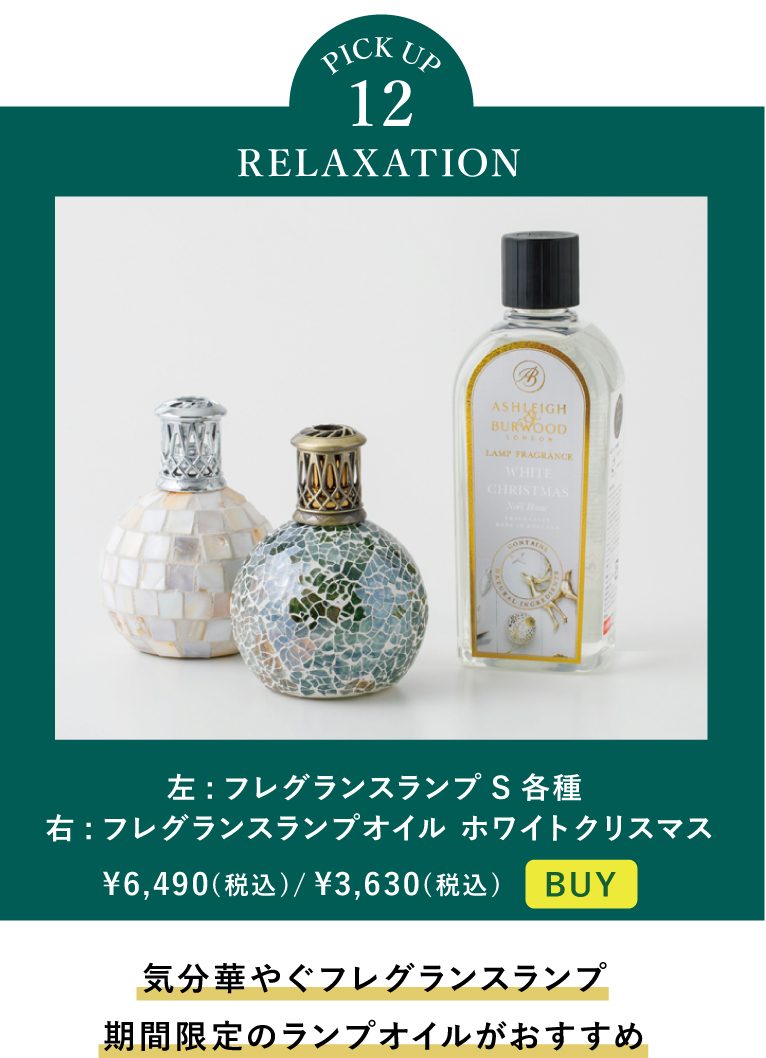 Ashleigh & Burwood(アシュレイ&バーウッド)のフレグランスランプ。職人が1つひとつ丁寧に仕上げており、同じデザインのものでも、それぞれモザイクガラスの色味や配置が異なっています。ご使用の際に必要なランプオイルに季節限定の「ホワイトクリスマス」の香りが登場。カシミアムスクの上品さとバニラのほのかな甘さをブレンドしたロマンティックな香りです。