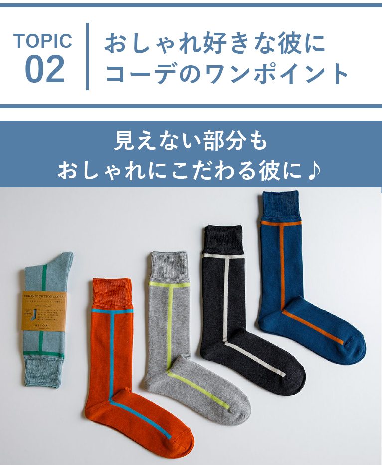 オーガニックコットン紳士ラインクルーソックス 全5種 ≫