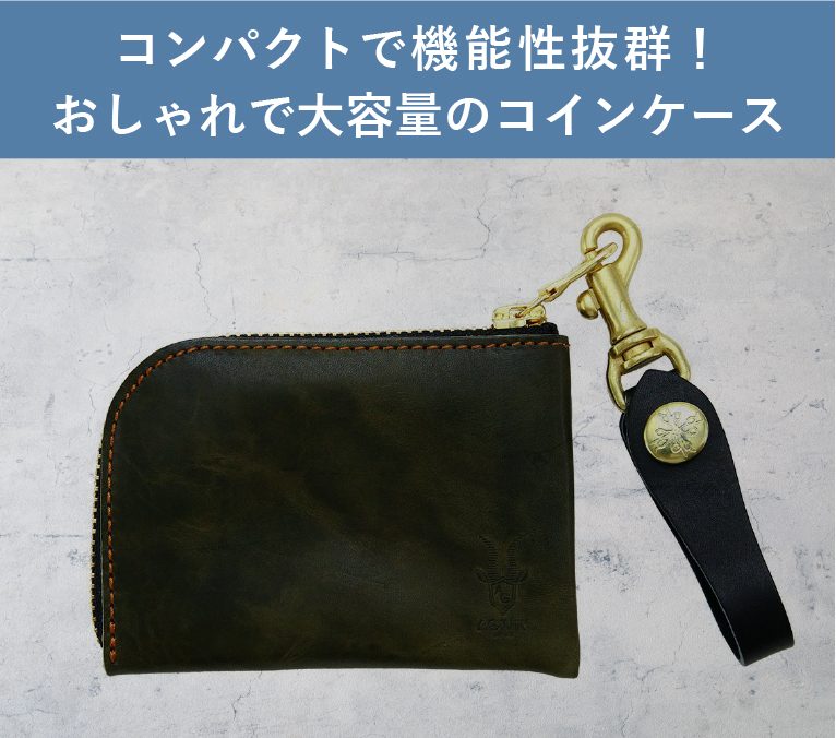 L字ファスナー式のコンパクトなコインケース。内側に、一回り小さなファスナーポケットのある二重構造で使いやすく、収納力も◎小銭・お札・カードをしっかり収納してくれます。革製の、品のある質感も魅力!表面には綺麗なツヤ。そして、手塗りのワックスが生み出すコントラストで、奥深い色合いに仕上げています。