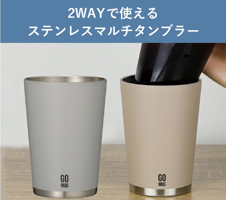 カップホルダー、ステンレスマグのどちらでも使えるマルチタンブラー。コンビニアイスコーヒーのレギュラーサイズにぴったり!マグとしてもたっぷり460mLのしっかりサイズです。真空2層構造で、飲み終わりまでしっかり温度をキープしてくれます♪
