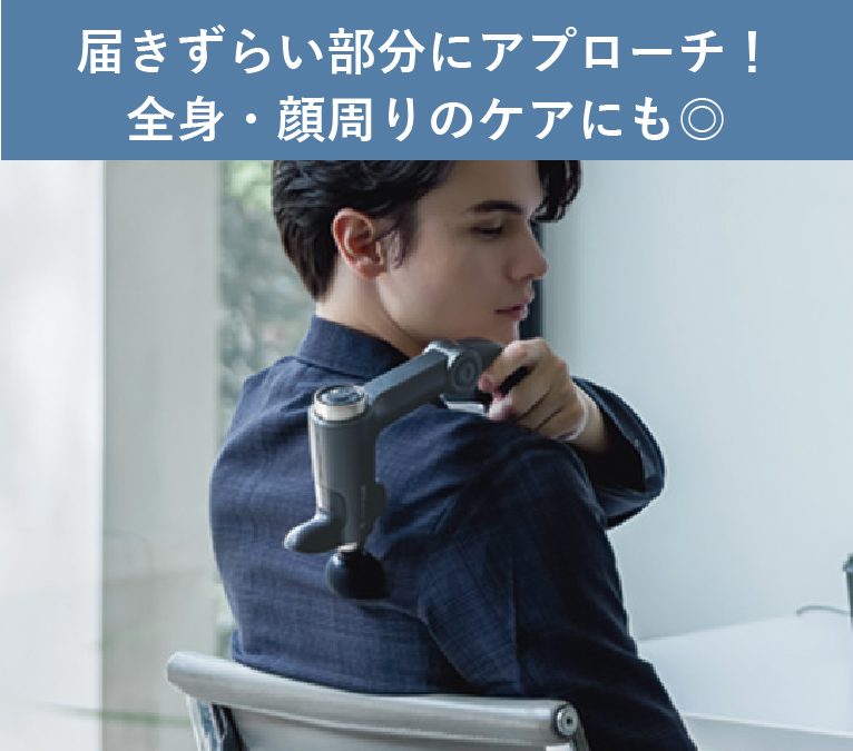 届きづらい部分にドクターエアのエクサガンハンディ!アームの開閉が可能で届きづらい背中や腰にも簡単にアプローチ!約350gの軽さとシンプルなデザインで、スマートなボディケアをサポート◎小型で軽量ながらパワフルな振動を実現。部位や好みに合わせて振動レベルを選択いただいて、全身にアプローチすることができます!