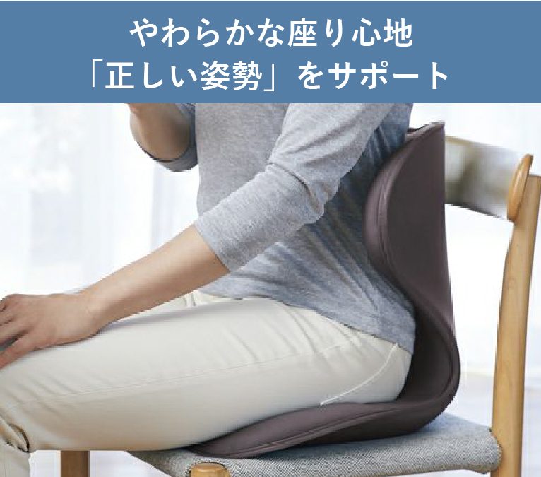 正しい姿勢を保つサポートをする姿勢矯正アイテム。座ったときの背骨が自然なS字カーブを保つよう、カイロプラクティックのメソッドを応用した独自機能で正しい姿勢をサポートします。ほどよい弾力性と圧力吸収性を持つやわらか素材「ソフトモールドウレタン」が身体のラインにやさしくフィット。長時間座っても快適♪