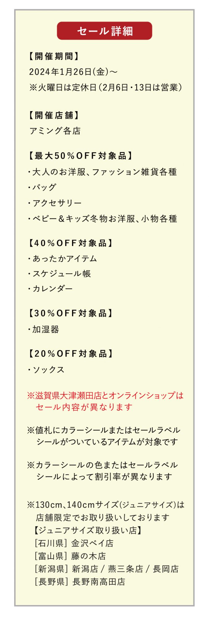 ※滋賀県大津瀬田店とオンラインショップはセール内容が異なります