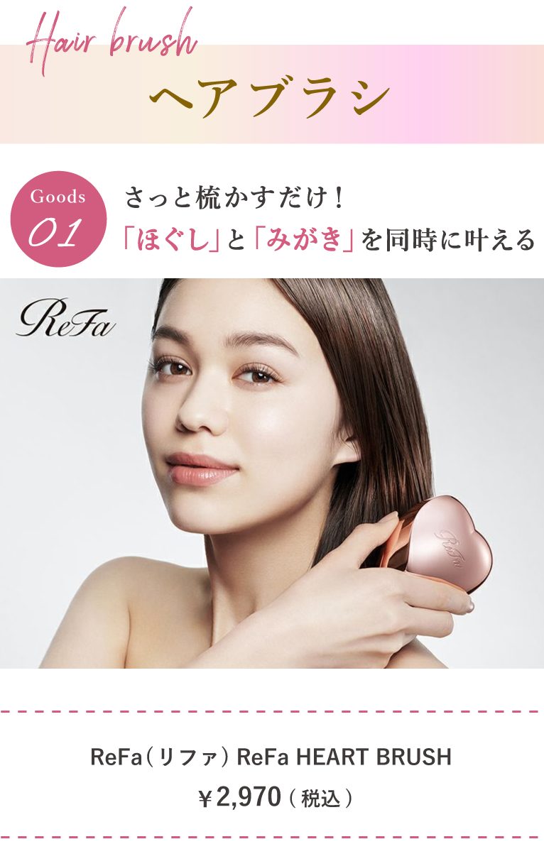 3段構造のピンが髪のからまりをキャッチ。ダメージを与えずにやさしく髪をほぐしてくれるほか、表面をなでるようにブラッシングすることで、キューティクルを整えて指通りなめらかなツヤ髪に♪