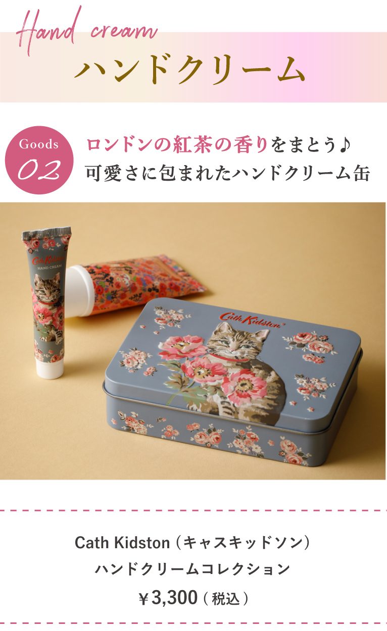 ハンドクリームの香りには、ブランド誕生の地ロンドンとも関係が深い“紅茶の香り”を取り入れました。ロンドンティーの香りとフレーバーティーの香りが1本ずつセットされています。