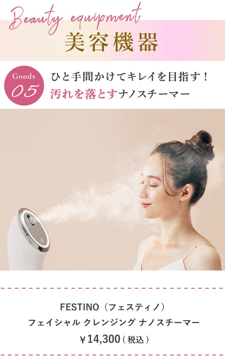 ※「FESTINO(フェスティノ) フェイシャル クレンジング ナノスチーマー」は下記店舗では取り扱っておりません[新潟県]上越店 [栃木県]陽東店[長野県]稲里中央店/長野南高田店[愛知県]天白店[滋賀県]栗東店