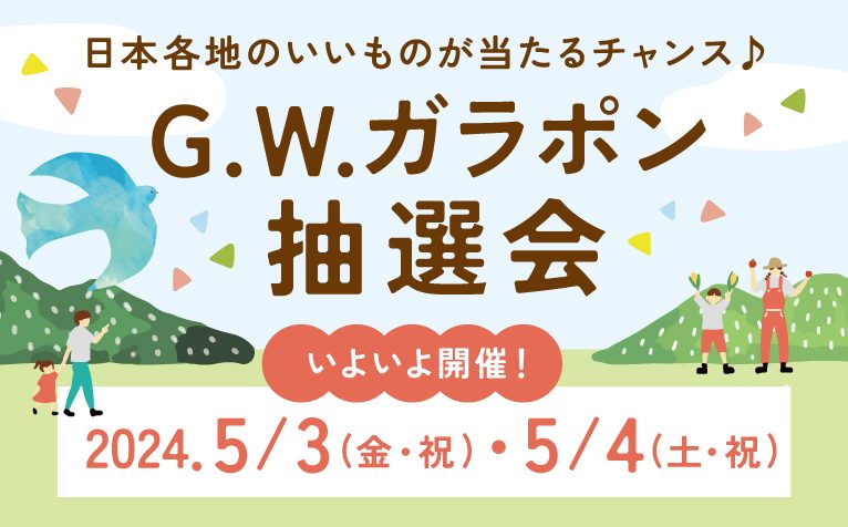 【※この記事は過去の記事です】 【日本各地のいいものが当たるチャンス!】いよいよ5/3・4はG.W.ガラポン抽選会開催!