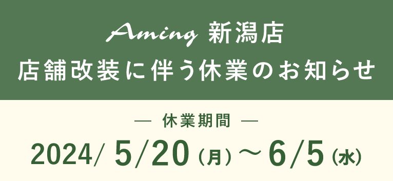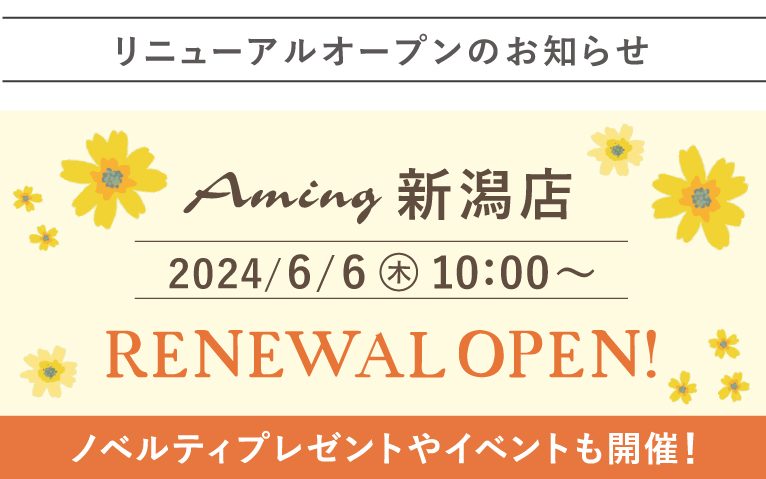 この度、アミング新潟店は店舗を改装し、6/6(木)にリニューアルオープンをさせていただくことになりました。