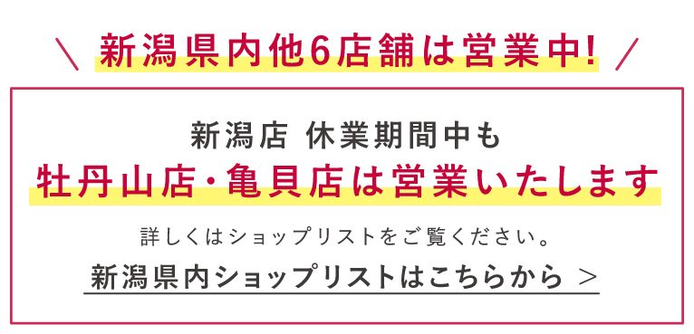 店舗改装に伴い、新潟店は下記の期間お休みをいただきます。