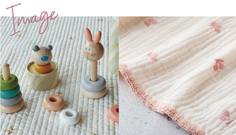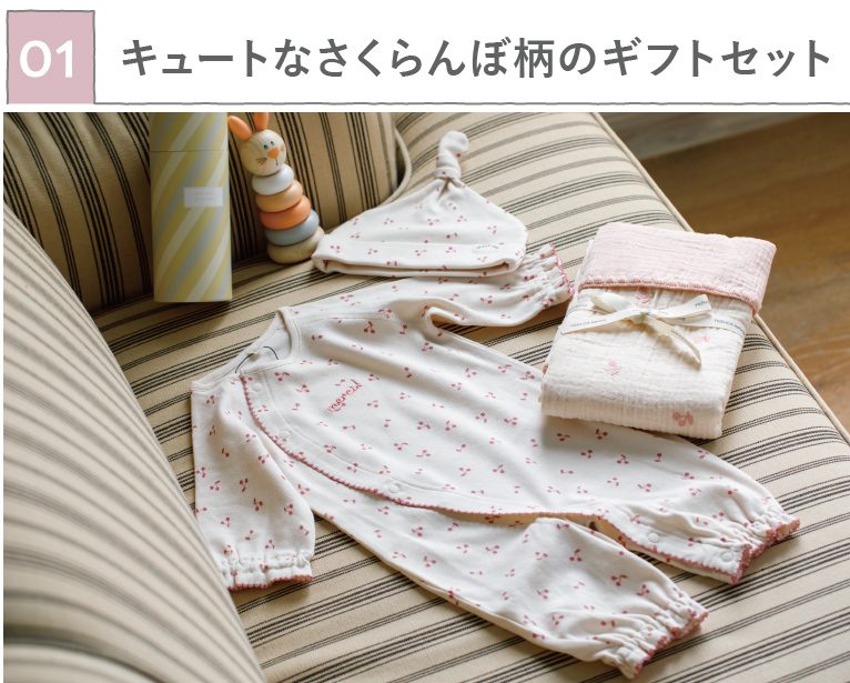この季節にぴったりな可愛いさくらんぼ柄の2Wayオールとやさしい色合いの木製おもちゃセット。ふんわり4重ガーゼのおくるみは、赤ちゃんにやさしい綿100%でつくられています。ガーゼ素材なので季節を問わず使えて、コンパクトなサイズなので持ち運びにも便利なのがうれしいポイント♪