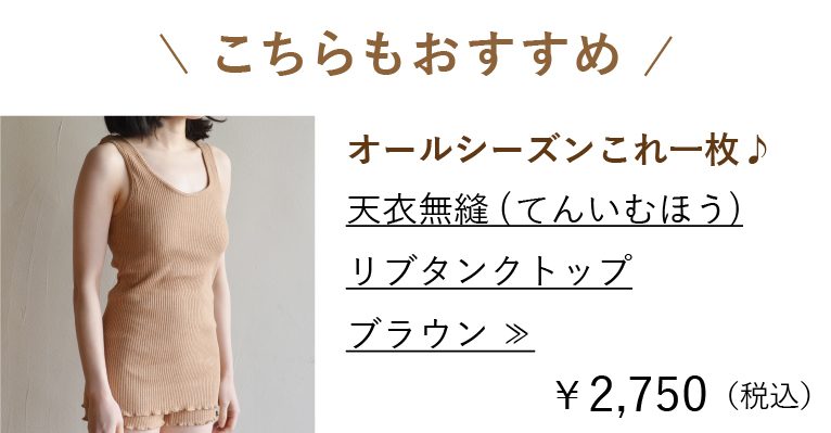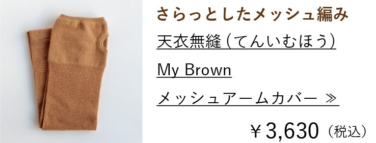 オーガニックブランド『天衣無縫』のリブインナーシリーズ、アームカバーなど、オーガニック栽培のブラウンコットンを使ったアイテムをご用意しております。