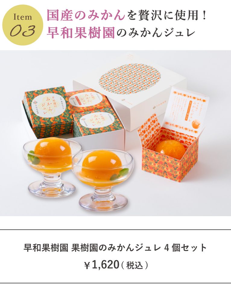 ※「果樹園のみかんジュレ 4個セット」は人気商品のため、品薄・欠品の場合がございます。欠品の場合、4月下旬入荷予定です