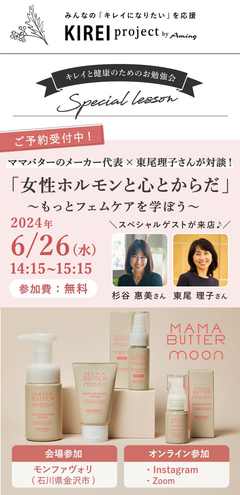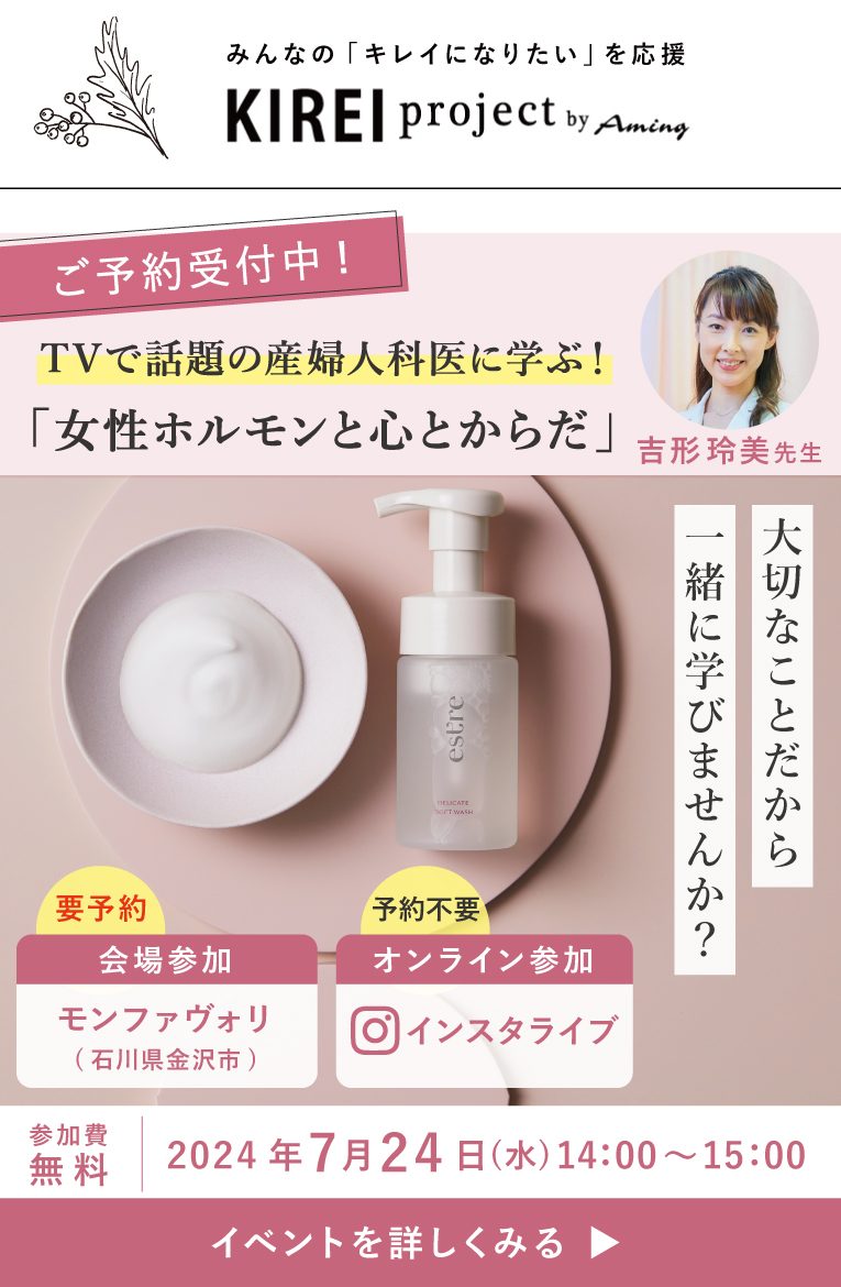 アミングの「キレイになりたいプロジェクト」では、キレイと健康を願うすべての女性を応援するためのスペシャルな企画をご用意しています!今回は「女性ホルモンと心とからだ」をテーマにしたお勉強会です。